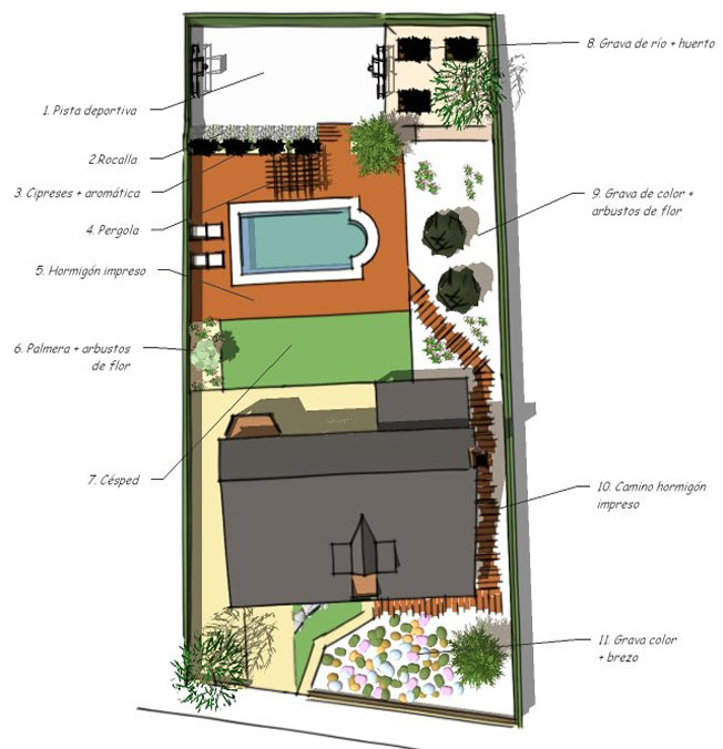 Nos encargamos de desarrollar todo el proceso del proyecto: visita y medición inicial, diseño del jardín, elaboración de planos, dimensionado de riego, elección del material vegetal, presupuesto y ejecución final, ajustándonos a las necesidades de cada cliente particular, comunidad o empresa.